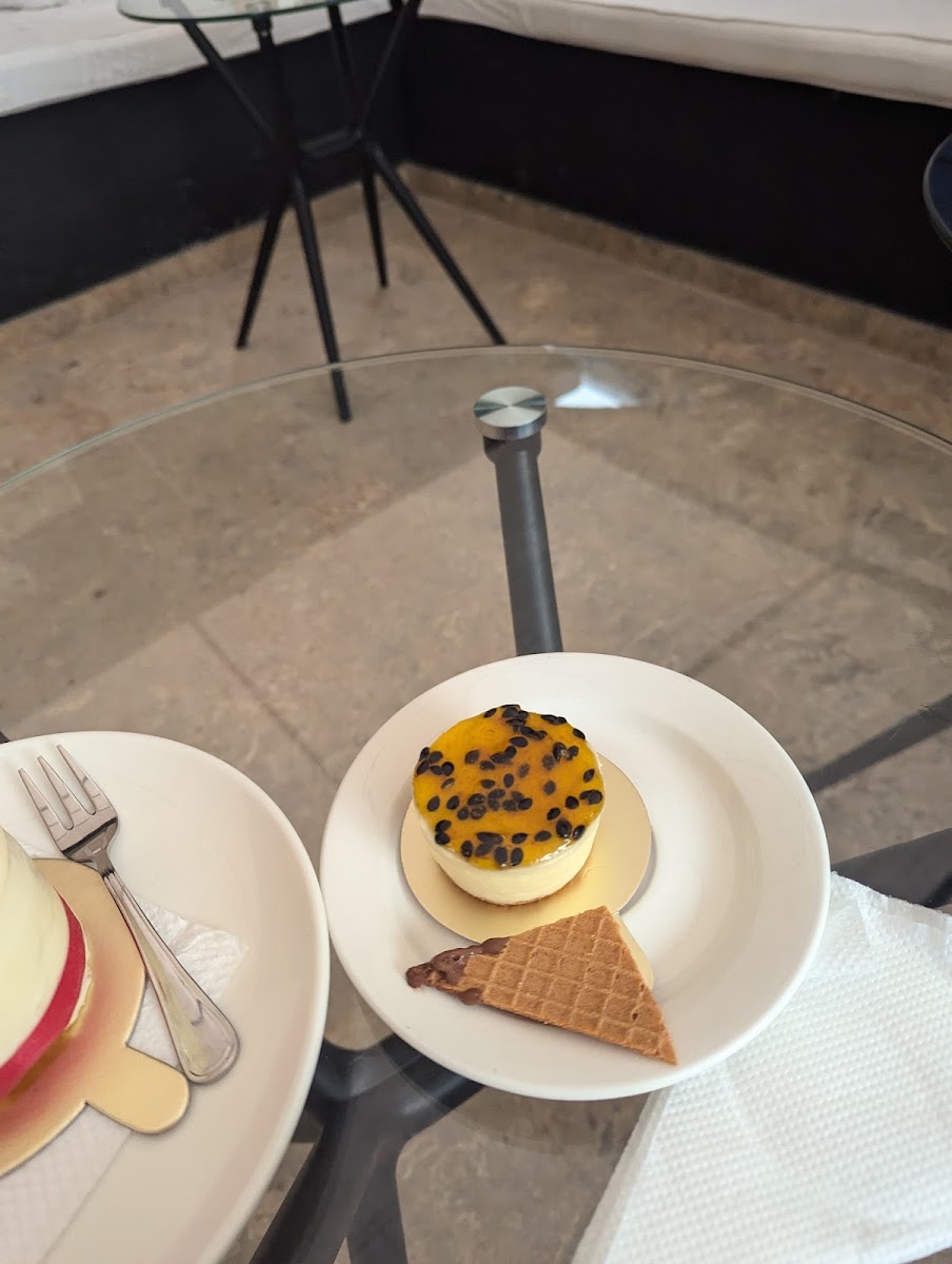 Taste: the Dubai chocolate flavor was amazing!! Had to go back for it. Really nice creaminess too. Location: The outdoor seating overlooks a parking lot so I would suggest to put something (plants or woven mats) to hide that view of the terrace Price: a bit pricey — 700 for two scoops on the smaller size.